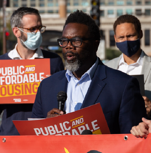 Brandon Johnson, a leader in the Chicago Teachers Union, ran for Cook County Commissioner in 2018 with backing from the labor movement on a message of protecting public workers, investing in health care and community services, and criminal justice reform. The People’s Lobby’s Oak Park members endorsed Johnson and canvassed voters weekly during the primary. Johnson won, and has worked closely with us and our allies to advance proposals to spend $1 billion from the federal America Rescue Plan on housing, mental health care, and jobs in Black and Latinx communities hardest hit by the pandemic. The Cook County board plans to make final spending decisions in 2022.