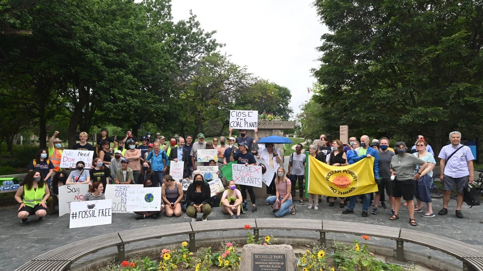 Our years of organizing in partnership with the Illinois Clean Jobs Coalition paid off this year when we finally passed the Climate and Equitable Jobs Act (CEJA). This historic climate and energy legislation centers communities most impacted by the climate crisis and makes Illinois a national leader on climate action. CEJA will put Illinois on a path to 100% renewable energy, close all coal and natural gas plants in Illinois by 2045 (with many closing much sooner), hold utilities accountable, and create good green jobs equitably across the state. Our leaders have been organizing around this campaign for years, from participating in listening sessions in the early days of bill writing, to lobbying meetings with legislators in Springfield, to multiple direct actions over the summer pushing Illinois Senate President Don Harmon to carry CEJA over the finish line.